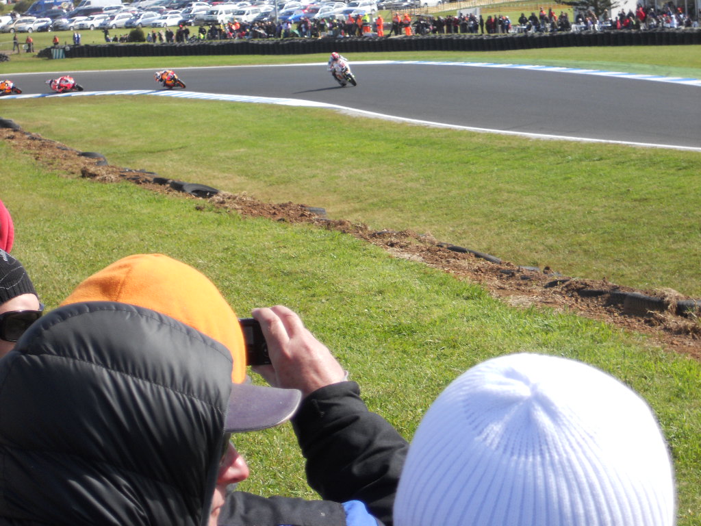 Similar start as yesterday, up relatively early, but its dribs and drabs, clean up, get your own breakfast, lumox about reliving those 1970's jokes again. The important thing though, is that its Qualifying day and whilst that doesnt start till about 3pm, Casey is on from10am for the last free practice, so need to get there by then. I decide to ride over, cause its cheaper, and I can ride into Cowes after qualifying, and suck up more of the GP cheer. It seems that everyone else, (at this house anyway) decides to do the same.We pull into the gate 4 carpark and headed straight to the Motocross behind Lukey Heights where a round of the Aussie Supercross Championship was being run. It was all close action stuff, some of the boys spent some time there Friday as well. It was hard to see though with limited stands and mounds for shorter spectators....I was OK though..could see just fine!
